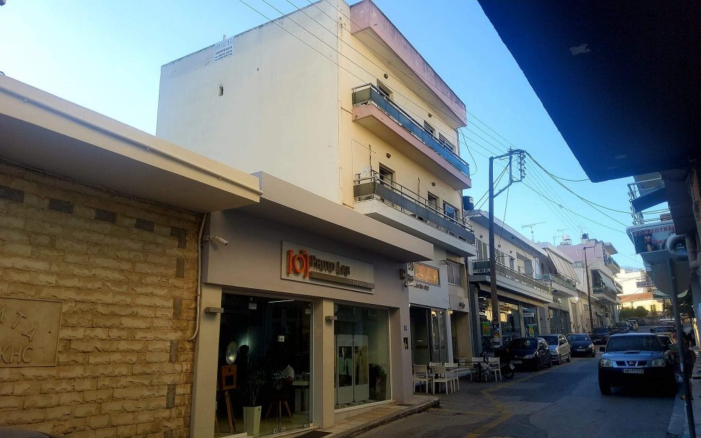 The building is situated in one of the most central streets of Mires. It has a basement, the pizzeria has a back yard. It has an elevator and two apartments that  are rented. Each apartment is 100m2 big and has 2 bedrooms, 1 bathroom, kitchen and separate living room area. Every apartment has AC.   The building was built in 1985.
